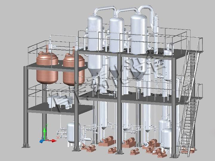 整套設備結構緊湊,占地面積小,布局簡單流暢,代表了大型成套蒸發設備的發展方向。